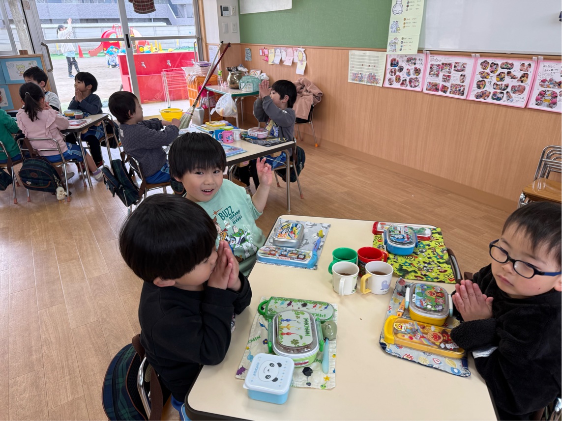 園庭に出ると、鬼は外!福はうち!と言いながら元気いっぱい力強く豆まきをしていて、